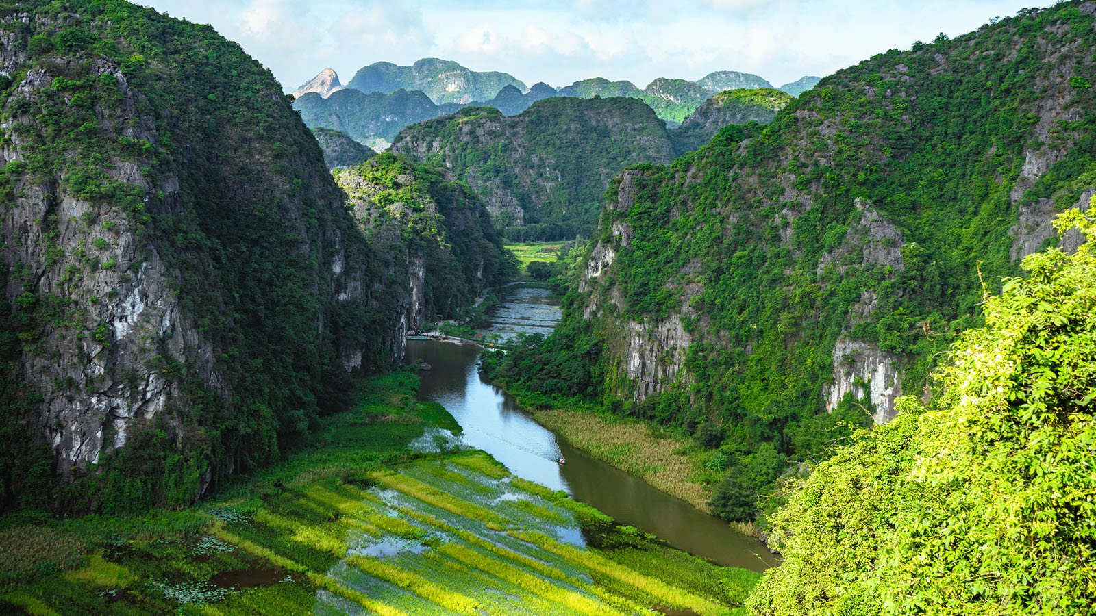 Intérêts : Balade en sampan, à vélo et à pied, paysages grandioses, rizières, rivières et rochers karstiques, nuit chez l'habitant ou chez un lodge de charme.
