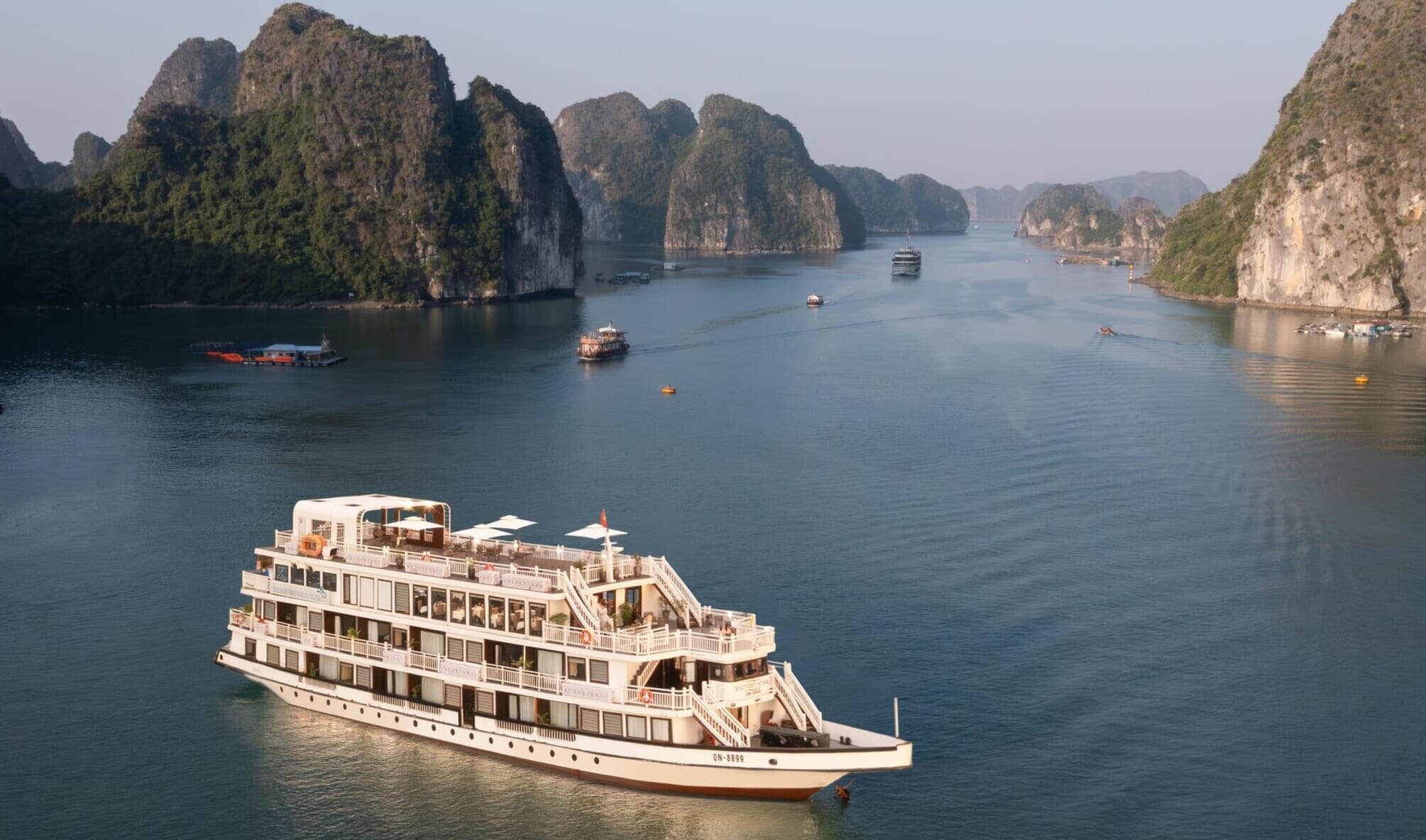Vers 7h30 : Prise en charge à votre hôtel dans le vieux quartier de Hanoi, puis transfert vers l’ile de Tuan Chau en mini-van (Profitez du paysage de la campagne du delta du fleuve Rouge). Une navette se chargera de votre transfert sur Arcady Premium Cruise.