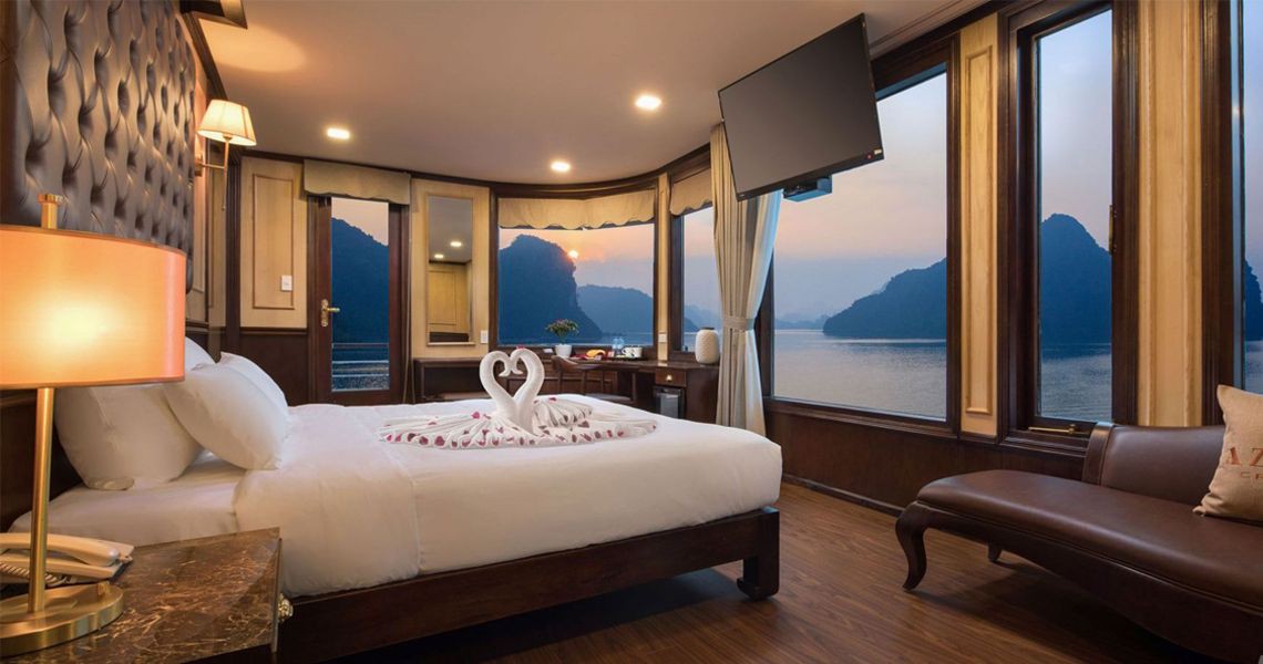 Croisière Azalea 3 jours 2 nuits dans la baie de Lan Ha. Découvrez îlots cachés, villages flottants et grottes en kayak, admirez le lever du soleil, savourez une cuisine raffinée et profitez de deux nuits en cabine élégante.