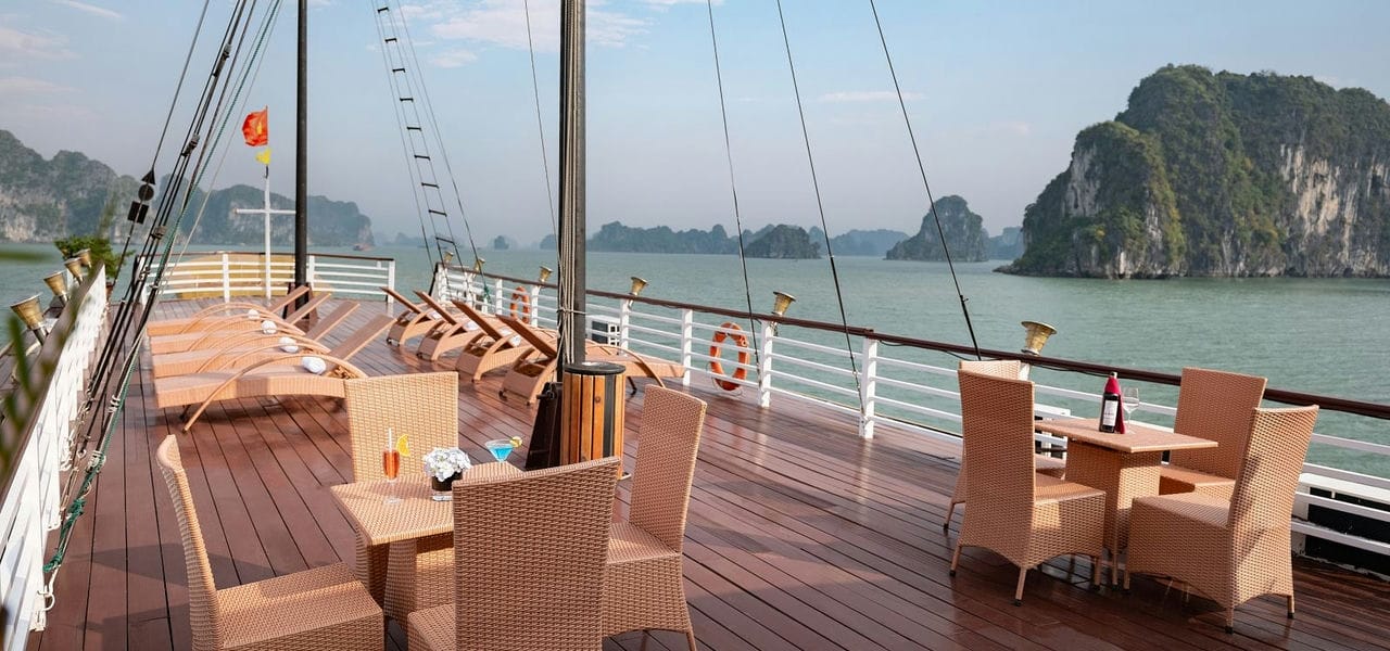 Remontez à bord de la jonque pour vous détendre sur le solarium et profiter des vues fantastiques qui défilent devant vous. Sunset Party pour célébrer le coucher du soleil.