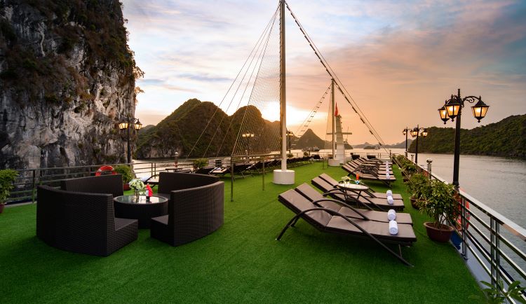 Le déjeuner est servi alors que le Capella entame la croisière dans la baie d’Halong, direction la baie de Lan Ha. Il traversera des paysages incroyables, en particulier au voisinage de Con Vit et croisera au large de l’ile de Da Chong, célèbre pour soutenir un phare construit ici par les Français, il y a plus de 100 ans.