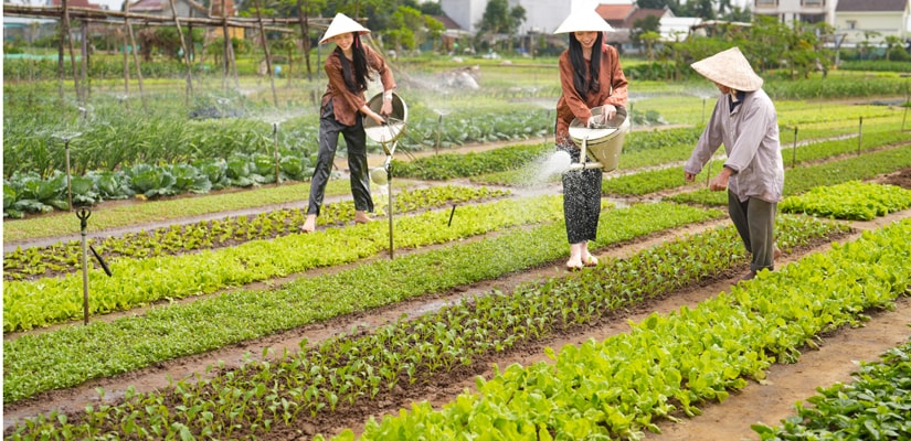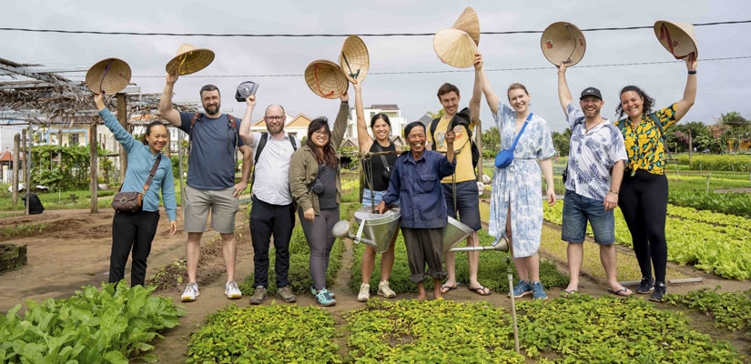 Notre guide vous accueillira de votre hôtel. Puis, balade à vélo à travers les étendues de rizières et les champs de culture au village de légumes de Tra Que puis vous faites un tour autour des champs de légumes bios pour découvrir la vie et les occupations quotidiennes des agriculteurs ainsi que les étapes et la technique de la culture des légumes bios. Vous pourrez participer aux activités champêtres comme un vrai agriculteur de la préparation de la terre pour le semis et pour la culture jusqu'à la cueillette des légumes. Vous irez au marché avec le chef cuisinier pour acheter les ingrédients frais puis retour chez l'habitant pour assister à un cours de cuisine, vous apprenez à faire quelques plats de spécialité de Tra Que comme les rouleaux du printemps, les nems et les crêpes croustillantes... Les herbes aromatiques et les légumes biois du village sont utilisés pour faire ces plats délicieux. Vous apprenez à tailler les fleurs en fruits et en racines pour la décoration des plats.
