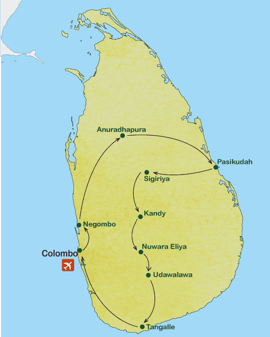 Remontez le temps dans le « triangle culturel » où se situent la plupart des perles archéologiques du Sri Lanka et plusieurs sites classés au Patrimoine Mondial de l'Unesco. Puis reposez-vous sur les belles plages des côte est et sud. Votre séjour en un coup d'oeil Jour 1 : Negombo Jour 2 : Anuradhapura Jours 3, 4, 5 & 6 : Pasikudah Jour 7 : Sigiriya Jour 8 : Kandy Jour 9 : Nuwara Eliya Jour 10 : Udawalawa Jours 11 & 12 : Tangalle Jours 13 & 14 : Colombo |