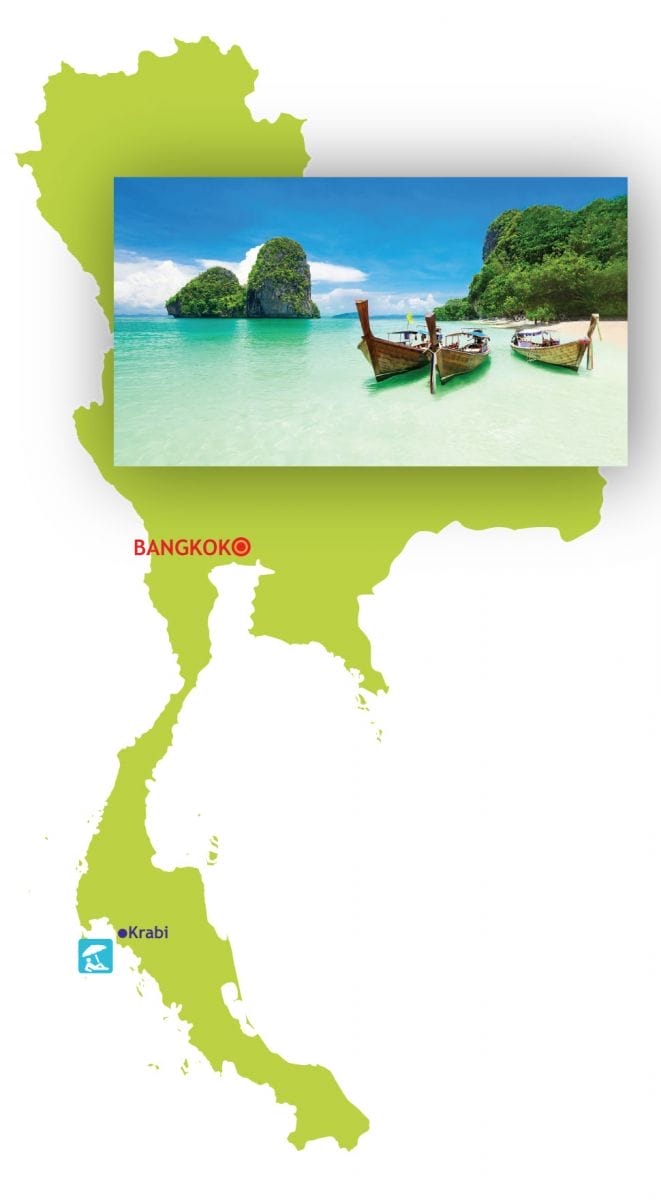 Les étapes de votre voyage : Bangkok - Krabi - Séjour balnéaire à Krabi Krabi est une province côtière à l'extrémité sud de la Thaïlande sur la mer d'Andaman. Il est connu pour être un paradis en quelque sorte, célèbre pour ses plages incroyables et ses formations calcaires. Avec plus de 150 îles au large et une multitude d'activités disponibles pour les loisirs, il n'est pas étonnant que de nombreux voyageurs considèrent Krabi comme la destination ultime pour une escapade à la plage durant leur voyage en Thailande. |