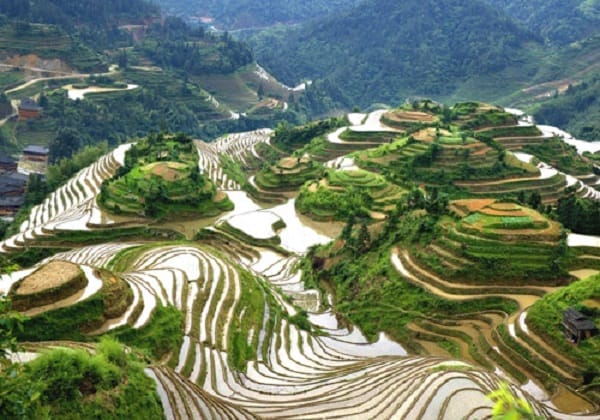 Après le petit-déjeuner à l'hôtel. Visite de la magnifique grotte de Reed Flute qui regorge les stalactites de toutes formes. Départ ensuite vers Longsheng pour visiter les rizières en terrasses de Longji et la culture minoritaire des groupes ethniques Zhuang et Yao, qui travaillent les rizières en terrasses. Chaque groupe minoritaire affiche des vêtements, une architecture, des coutumes et des festivités colorés distincts. Dîner libre et nuit à Guilin.