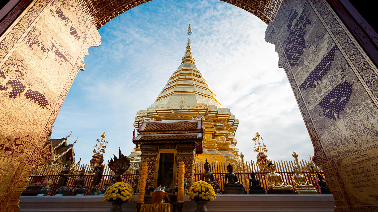 Visite extérieur du très étonnant et impressionnant temple Wat Rong Khun, communément appelé le Temple Blanc. En rupture avec la plupart des autres temples, cet édifice symbolise la pureté du bouddhisme par sa blancheur extraordinaire et suggère la réflexion sur l’illumination par ses morceaux de miroirs incrustés. Route vers Chiang Mai, en traversant de magnifiques vallées tapissées de rizières et des paysages inoubliables riches d’une nature tropicale immensément luxuriante. L’après-midi, visite du très vénéré temple de Doi Suthep. L’accès se fait par un grand escalier avec des rampes en forme de naga (serpent mythologique). À plus de 1.000 mètres d'altitude, du haut de ses 300 marches, ce monastère vous offrira une vue panoramique sur Chiang Mai, la “Rose du nord”.