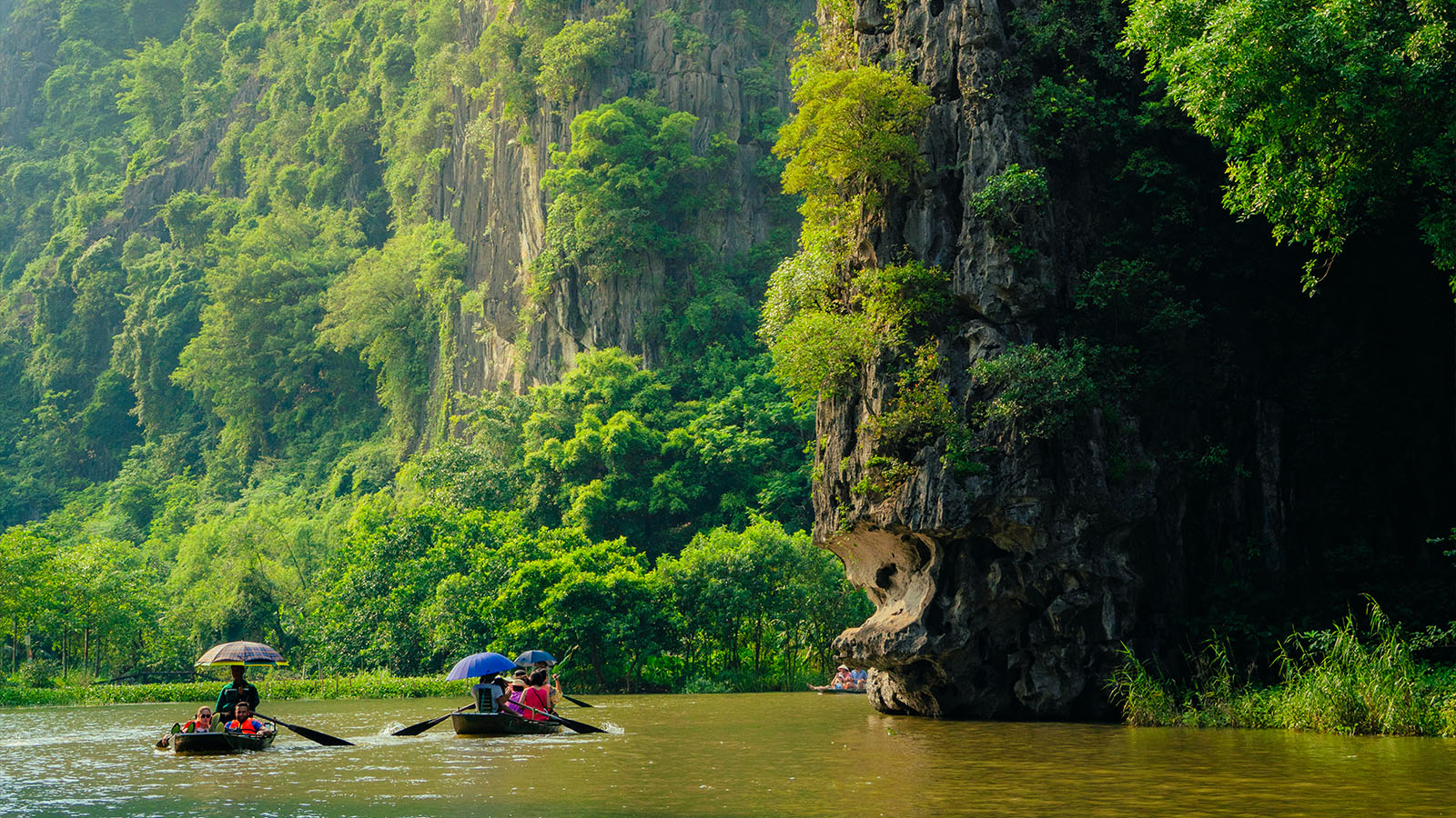 Intérêts : Balade en sampan, à vélo et à pied, paysages grandioses, rizières, rivières et rochers karstiques, nuit chez l'habitant ou chez un lodge de charme.