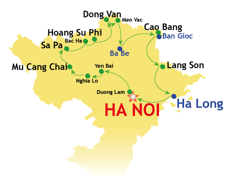 Jour 01 : Arrivée à Hanoi Jour 02 : Hanoi – Découverte de la Capitale Jour 03 : Hanoi - Duong Lam - Yen Bai Jour 04 : Yen Bai - Nghia Lo - Mu Cang Chai Jour 05 : Mu Cang Chai - Than Uyen - Sa Pa Jour 06 : Sa Pa - Hau Thao - Xa Xeng - Bac Ha Jour 07 : Marché Bac Ha - Hoang Su Phi Lodge Jour 08 : Hoang Su Phi Lodge - Lung Cu Jour 09 : Lung Cu - Dong Van - Meo Vac - Bao Lac Jour 10 : Bao Lac - Ba Be - Balades à pied Jour 11 : Ba Be – Kayak sur le lac Ba Be – Cao Bang Jour 12 : Cao Bang - Chutes Ban Gioc - Cao Bang Jour 13 : Cao Bang - Lang Son - Binh Lieu Jour 14 : Binh Lieu - Baie d'Halong - Nuit à bord Jour 15 : Baie d'Halong - Kayaking – Départ |