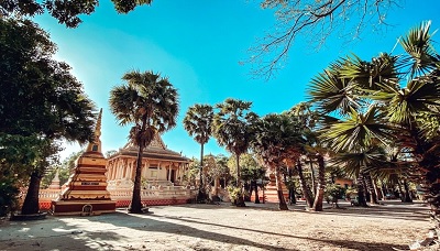 De son vrai nom Seraytecho Mahatup en langue khmère, la Pagode des chauves-souris est un joyau de l’architecture bouddhique khmère. Agée de plus de 400 ans, elle doit son surnom aux milliers de ces mammifères volants qui ont élu domicile dans les arbres fruitiers aux abords immédiats de la pagode. On notera que ces charmantes bestioles poussent le respect du sacré jusqu’à ne pas manger les fruits des jardins de la pagode, mais s’envolent chaque soir quérir leur nourriture ailleurs…