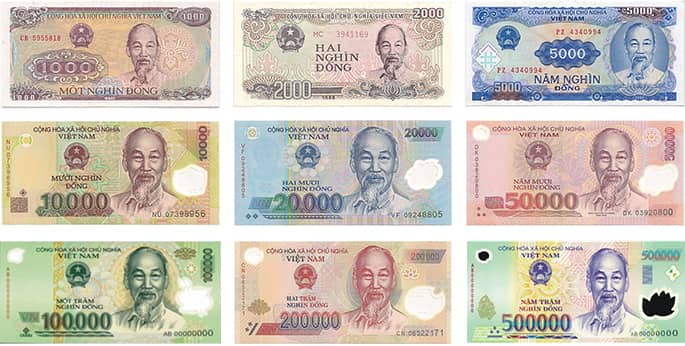 Les taux évoluent légèrement selon le moment et le lieu d’échange, mais voici une estimation fiable : 1 € ≈ 26 000 VND, 1 US$ ≈ 23 000 VND, 1 CHF (franc suisse) ≈ 22 000 VND et 1 $CA (dollar canadien) ≈ 17 000 VND